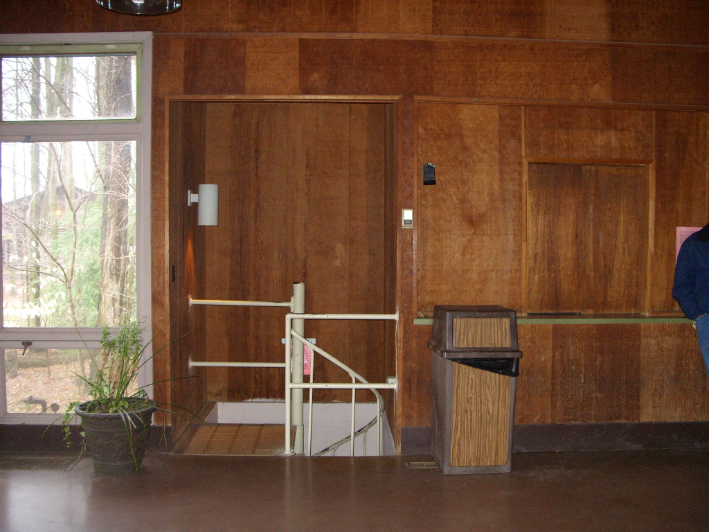 Maple showing spiral stair to downstairs kitchen (sink/microwave/fridge)