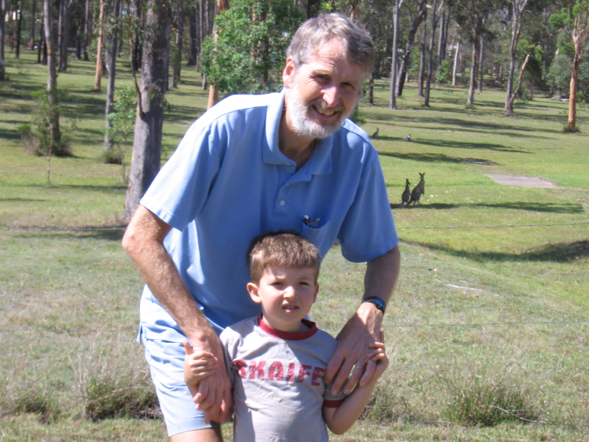 Gramps and Maxwell with kangaroos in neighbors yard