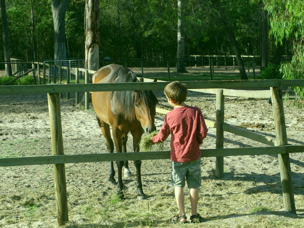 Maxwell feeds horse down Rundalua - this horse runs out and whinnies if Max is along