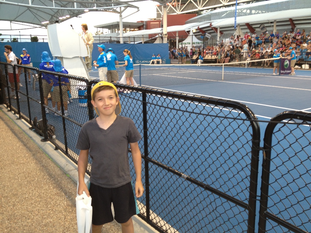 Maxwell at the Brisbane International Tennis tournament Jan 2 - after he got a signature from Gilles SImon