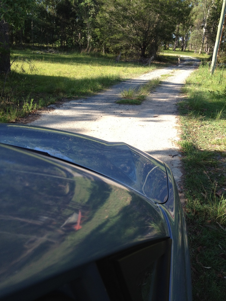 Coming up Joel's driveway - a kangaroo is waiting for us.