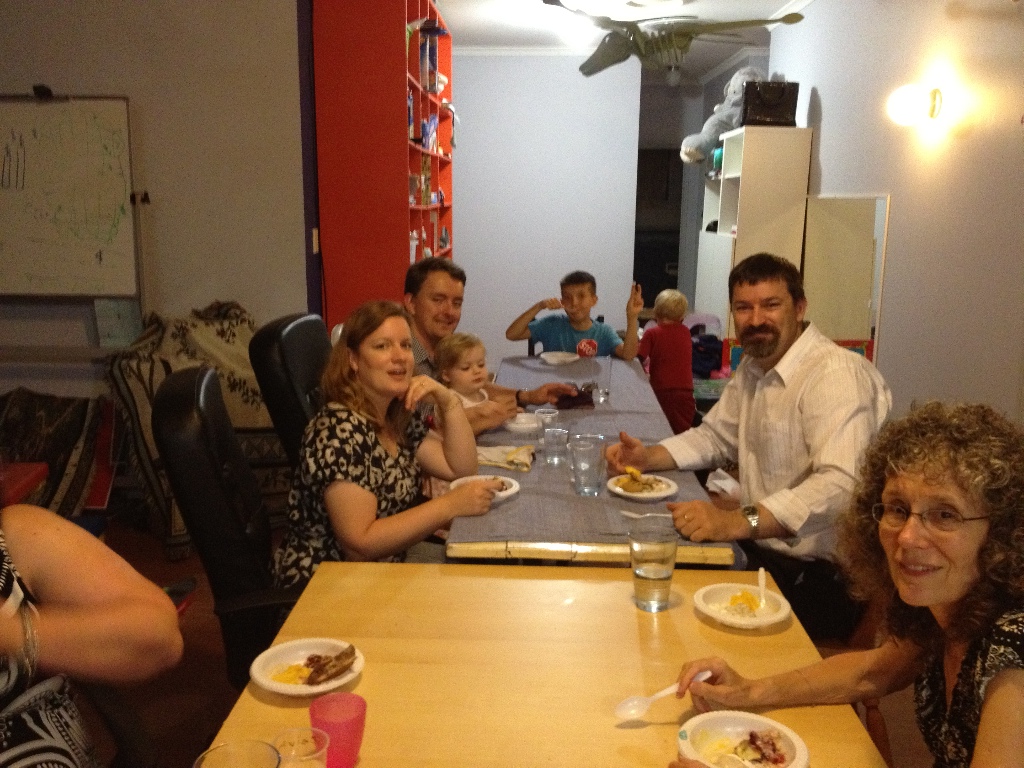 Christmas Eve - Katherine and Doug Stewart-Adams on left. Anthoney Mackin on right.