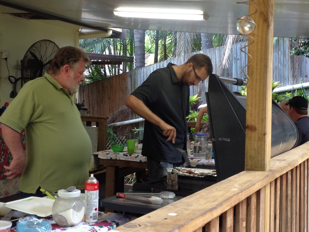 Doug (Anne-Marie's father) and Joel - we had fried bananas and bacon on the grill.