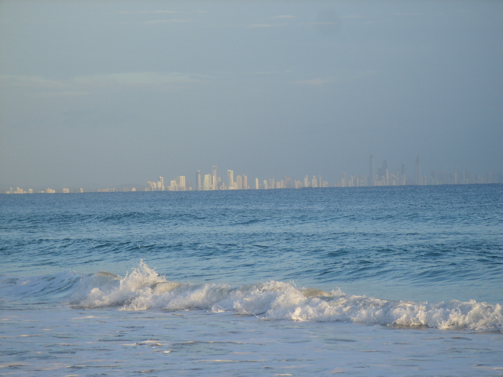 Looking to the hotels at Surfer's Paradise (15 or so miles away) in the early sun.