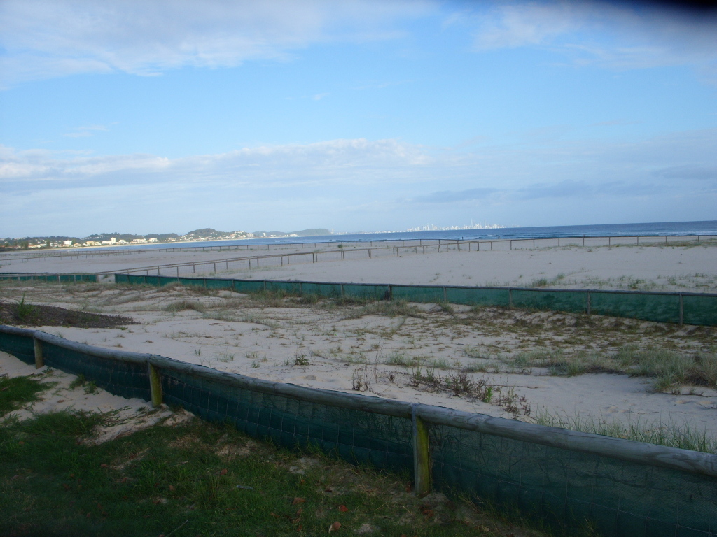 Kirra beach showing how wide the beach is.
