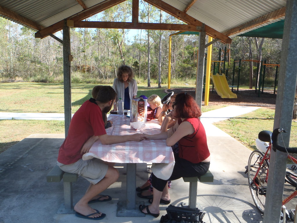 But first we had breakfast at Walkabout Park - Diane reading Scriptures