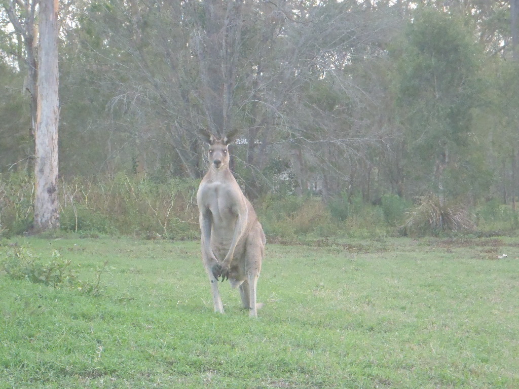 On the way home from the tennis, the "big daddy" of the kangaroo mob stayed put for this close-up picture. The rest hopped away.
