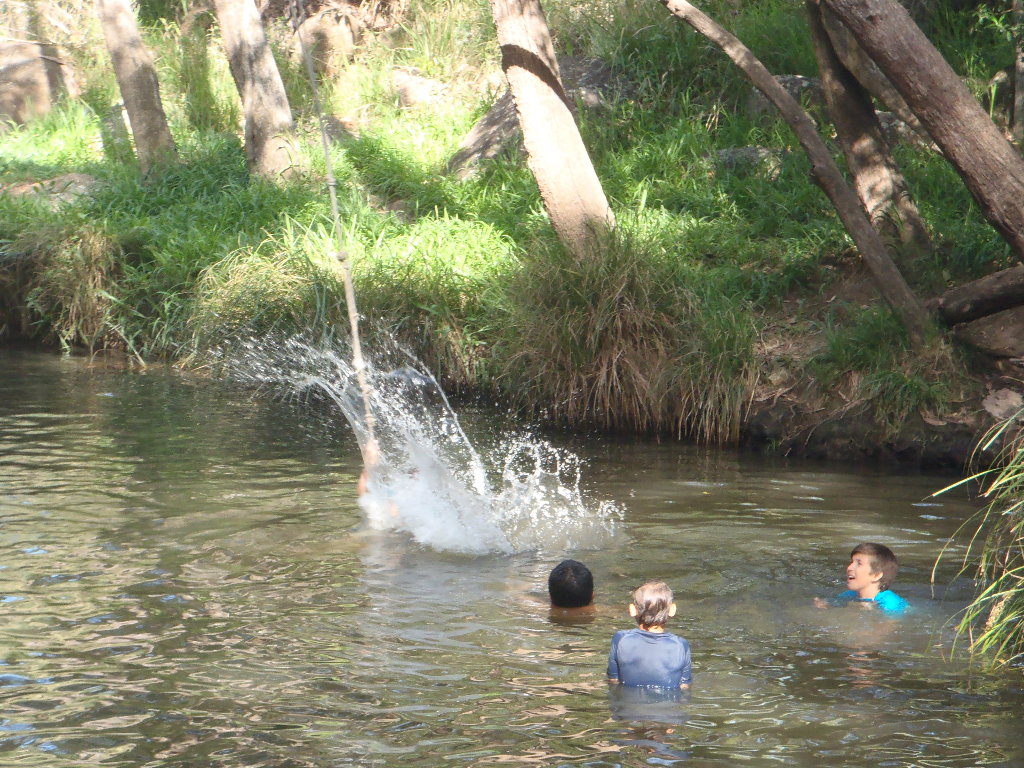 There is a rope to swing out - Matthew is hidden in that big splash.