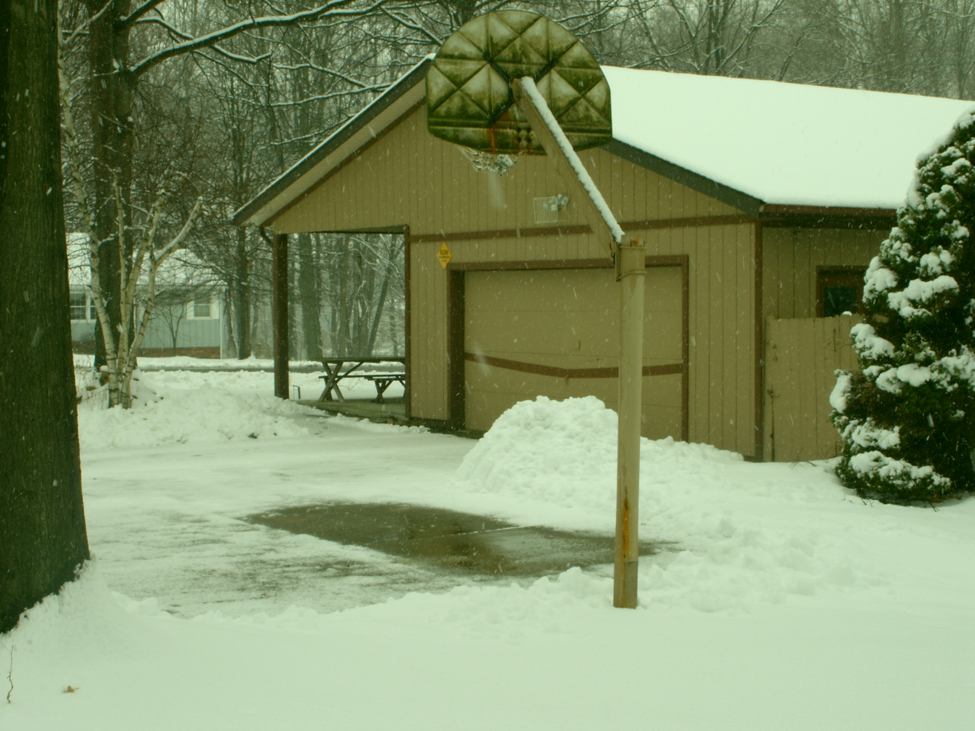 The pile of snow is from the last snow plus this one!