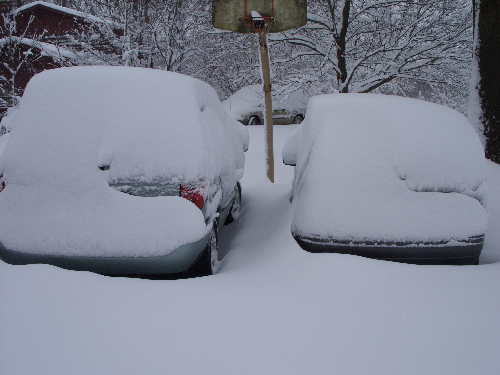 The cars that were not moved during the snow.