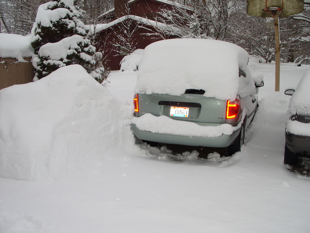 The big snow pile by the van.
