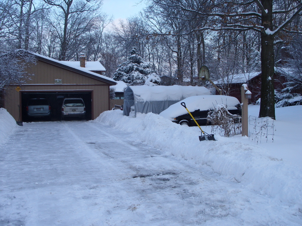 The big snow piles in the driveway - the ones from the last snow were still there.