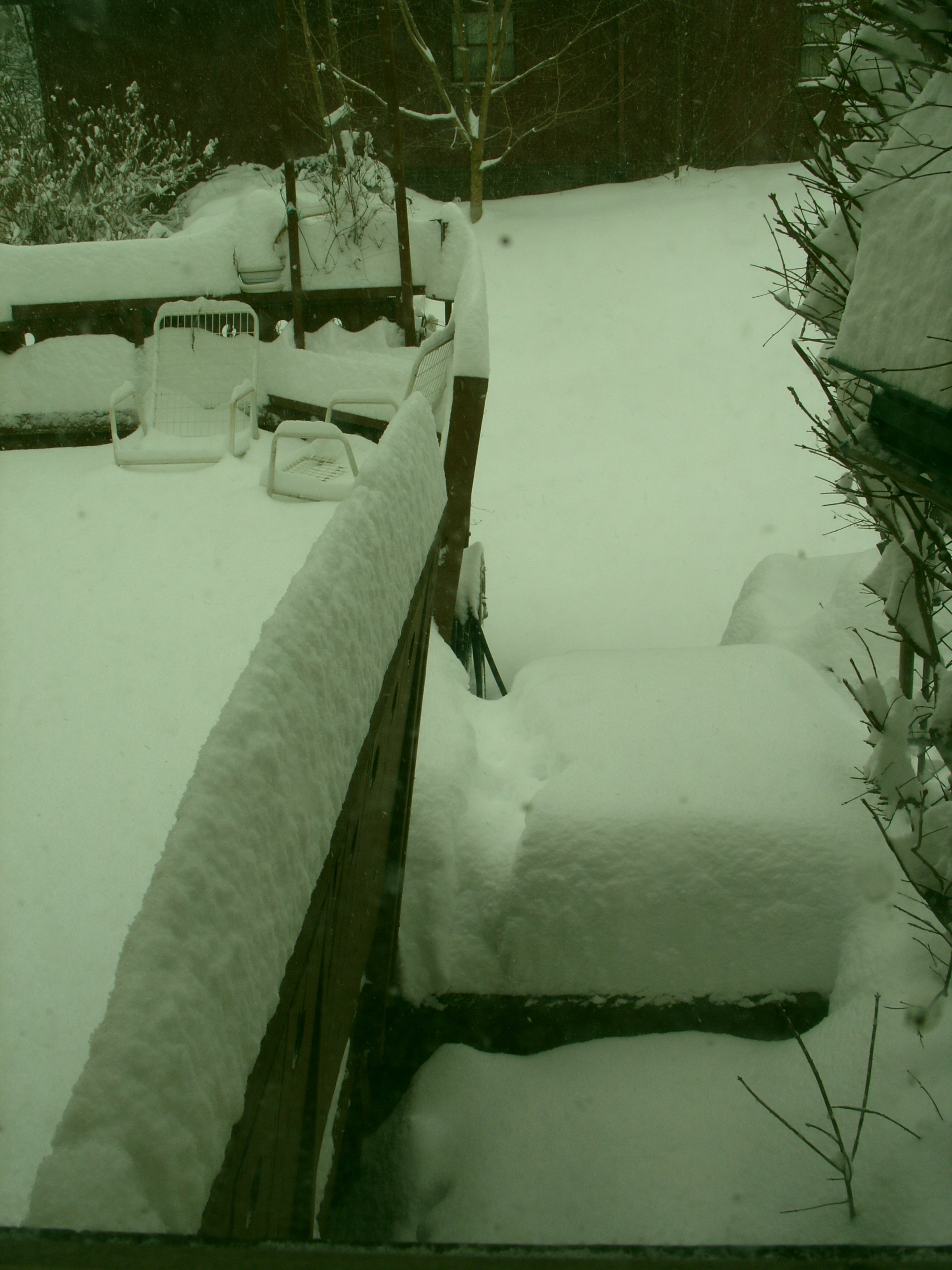 The snow on the railing is in sharp peaks!