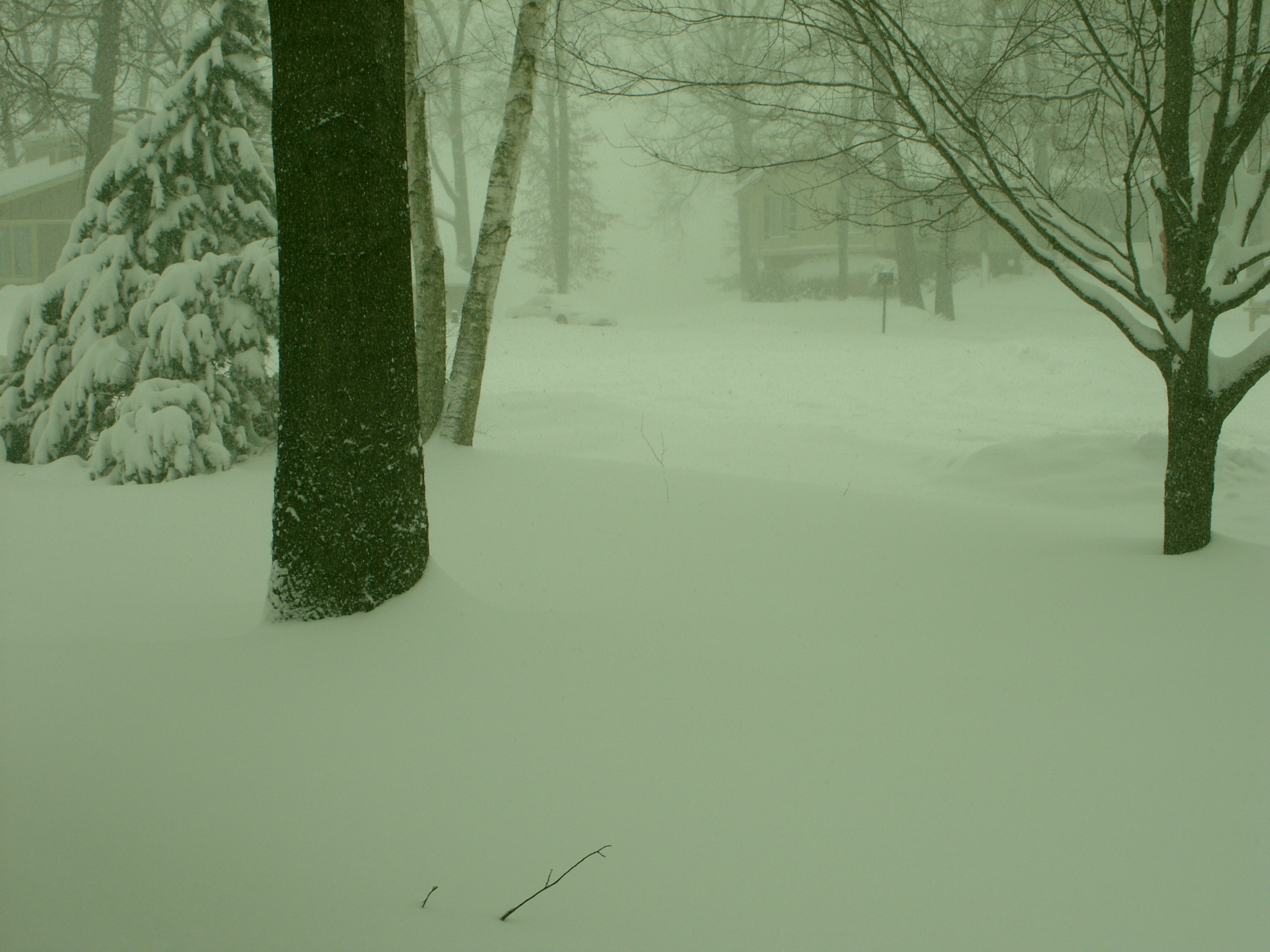 Heavy snow falling.