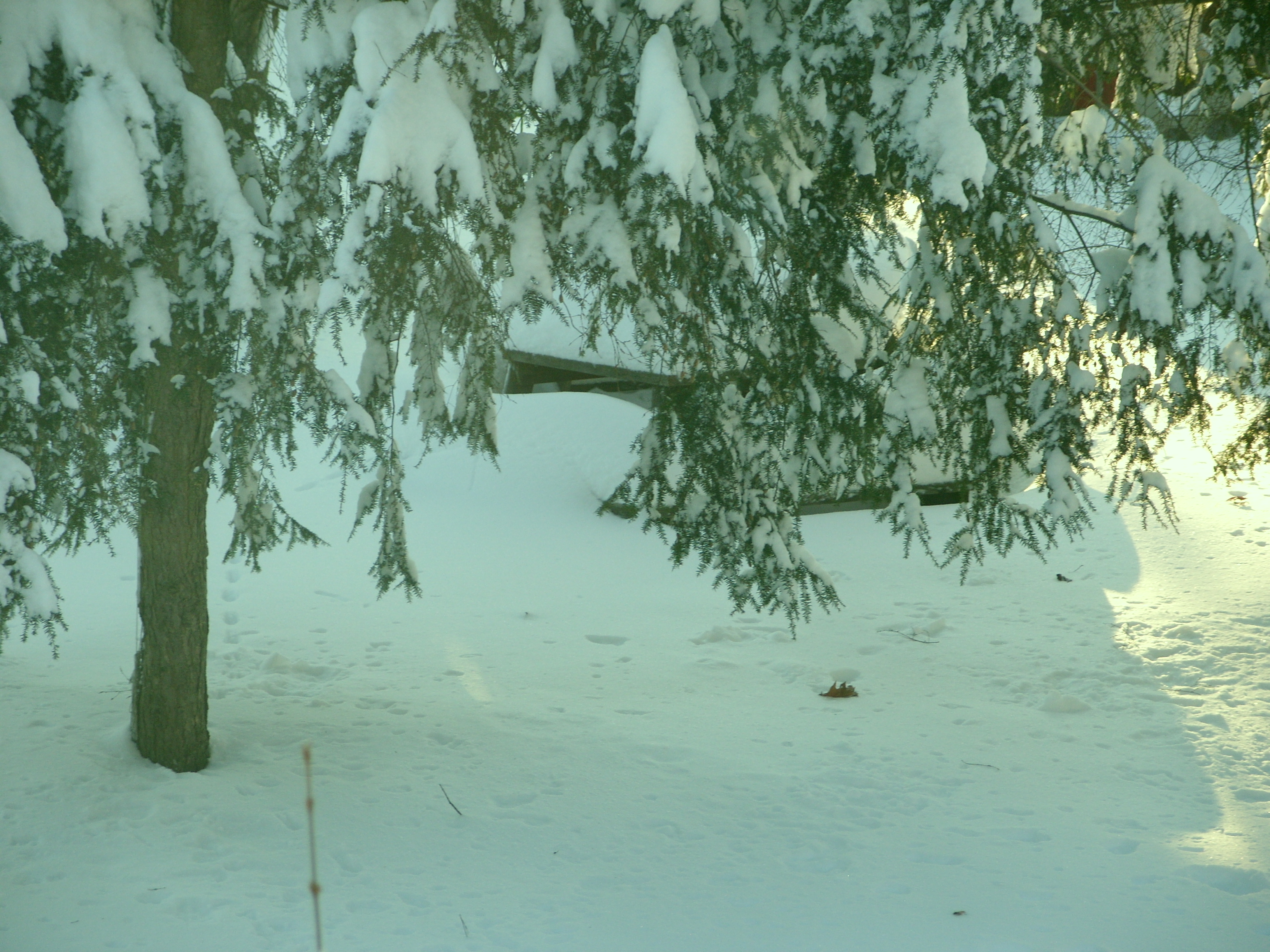 The picnic table is barely visible in the middle - wind blew snow arount it.